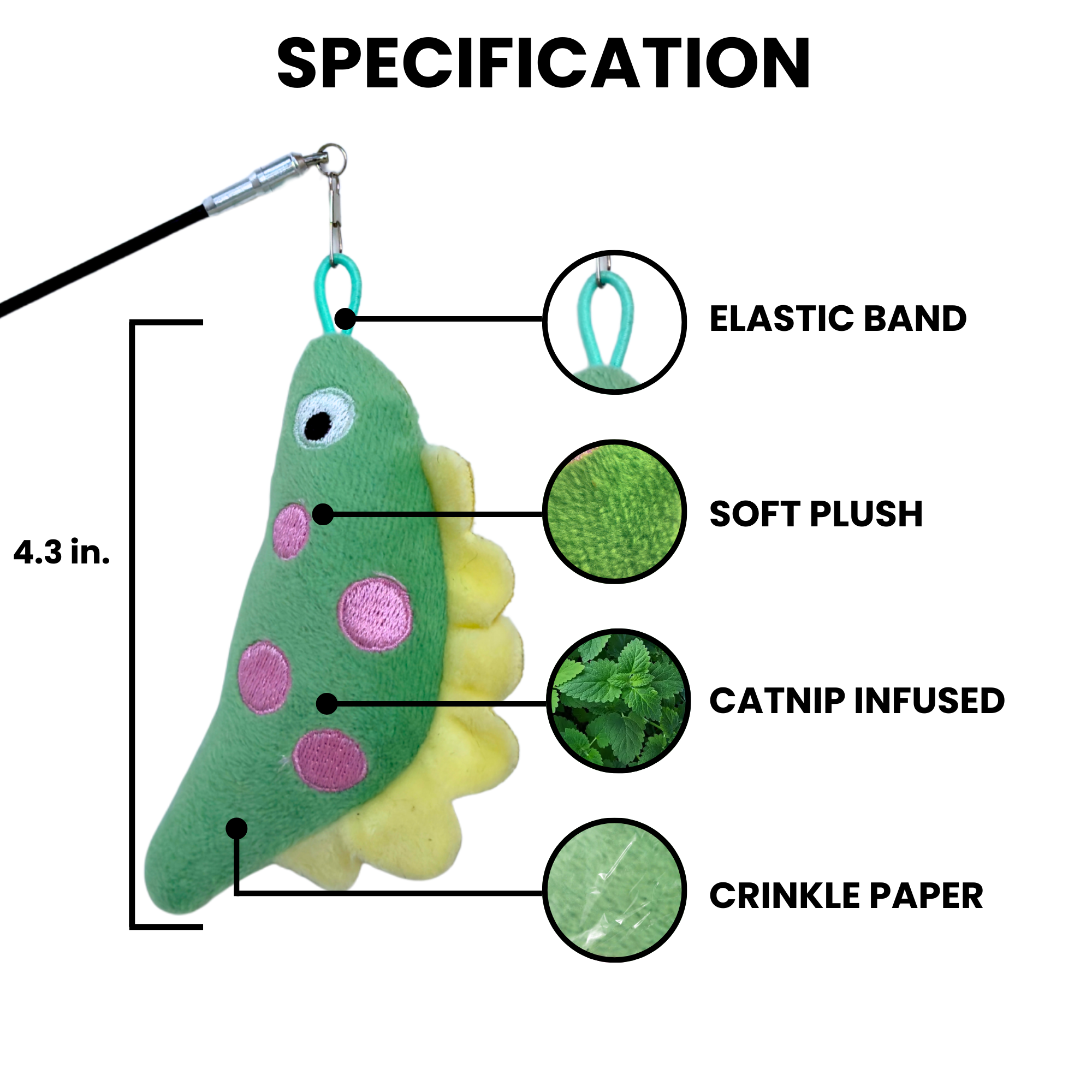 This interactive plush toy keeps playtime exciting whether your cat prefers solo missions or high-energy wand play with you. With a built-in loop, the Dino easily attaches to you Forever Stick™, giving you endless options for enrichment and engagement.