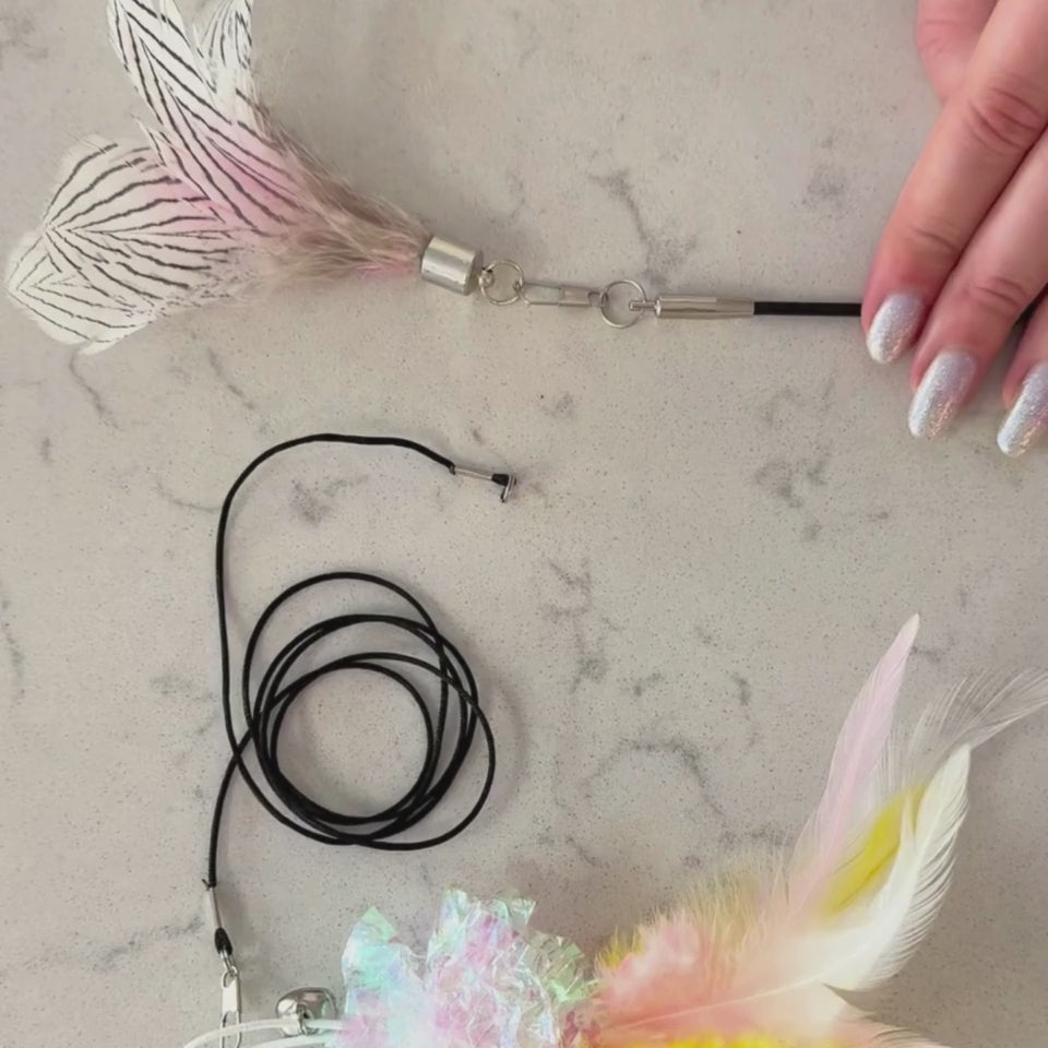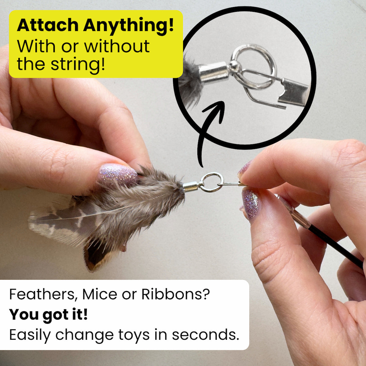 With our Universal Quick Clasp you can attach basically anything! Feather attachments, plush mice, catnip toys, paper balls - whatever your cat loves!