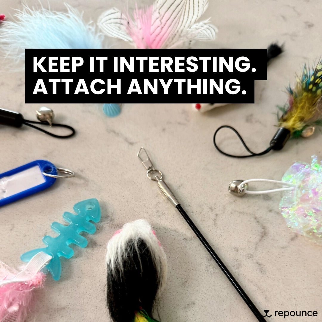 REUSABLE - Keep Your Cat Engaged With Variety! Quickly switch baits and feather cat toys to keep your cat’s interest. Attach anything to our cat toys wand. Works with store-bought attachments like cat toys with feathers or fun homemade toys!
