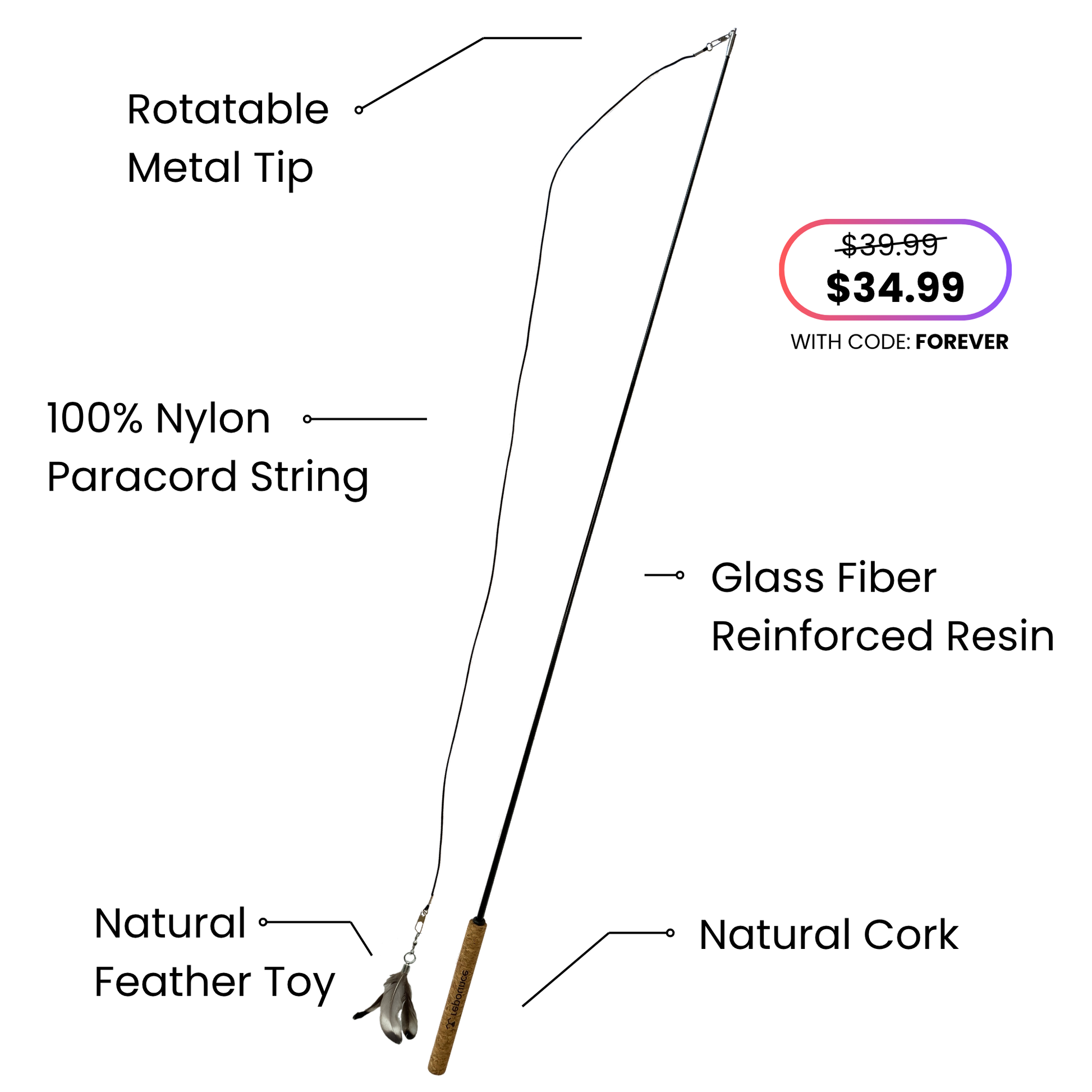FOREVER - Say NO To Single-Use Products! Don’t buy flimsy, single-use cat wand toys that end up in the trash in days. Forever Stick lasts for a lifetime of playtime. When the bait wears out then simply attach a new toy. Reusable and sustainable!